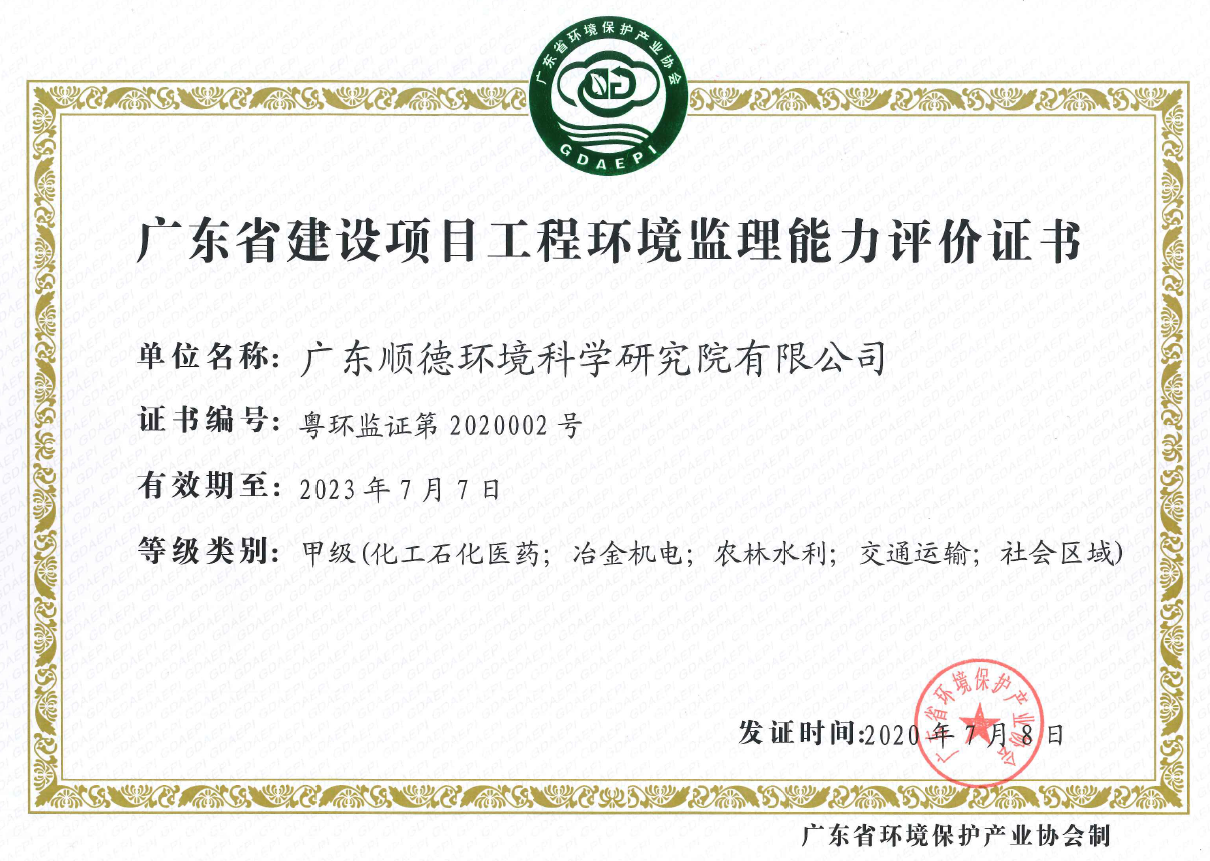 • 廣東省建設項目工程環境監理能力評價證書