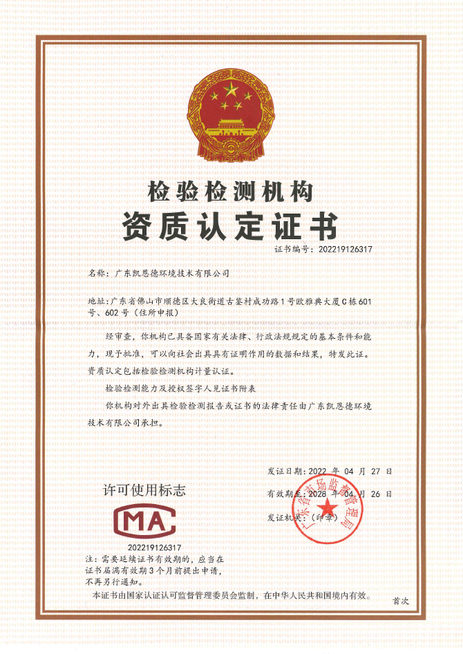 • 檢驗檢測機構資質認定證書